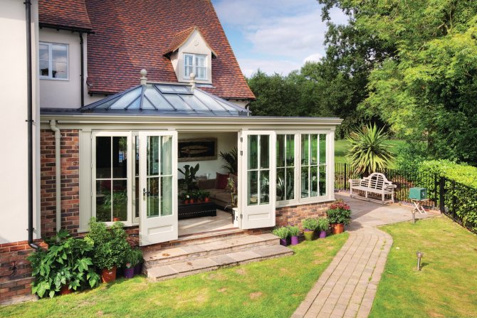 Для загородного участка характерна постройка невысокого дома, хотя встречаются и двухэтажные. Что касается самой веранды, то ее относят к одноэтажному помещению, которое может быть полностью или частично жилым в зависимости от типа постройки.