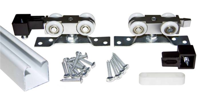 направляющие (1 или 2); соединительные петли и ролики каретки (2 или 4 шт.); панели; дополнительные принадлежности и регулировочный ключ.