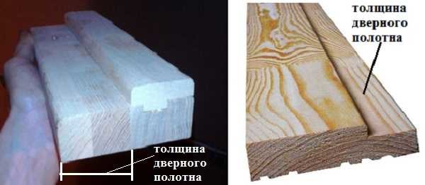 Дверную коробку делают из одной доски со сформованным пазом или составную — из нескольких досок, склеенных между собой. Ширина паза должна совпадать с толщиной дверного полотна или быть на пару миллиметров больше.