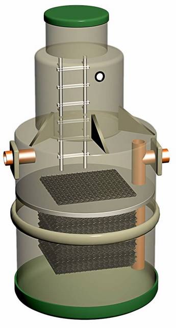 - Диаметр, угол уклона и глубина расположения труб, связывающих элементы системы.