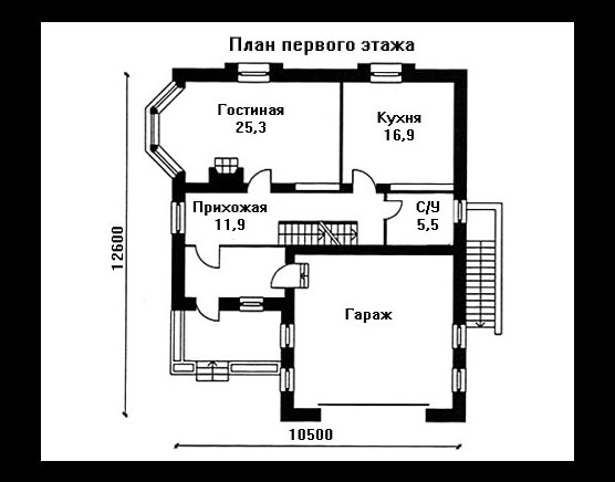 Недостаток у конструкции один – отсутствие внутреннего перехода между домом и гаражом. Остальное на вкус и цвет заказчика. Это можно увидеть на следующем плане.