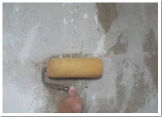 Грунтовочный раствор необходимо налить в пластиковый поддон и периодически смачивать в нем валик, перед раскатыванием по стене, с валика надо удалить излишки жидкости, поскольку она имеет низкую плотность и при избытке станет стекать с ворса. После высыхания первого слоя, аналогично выполняют второй.