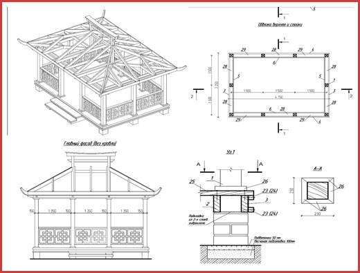 Чертеж беседки для возведения своими руками