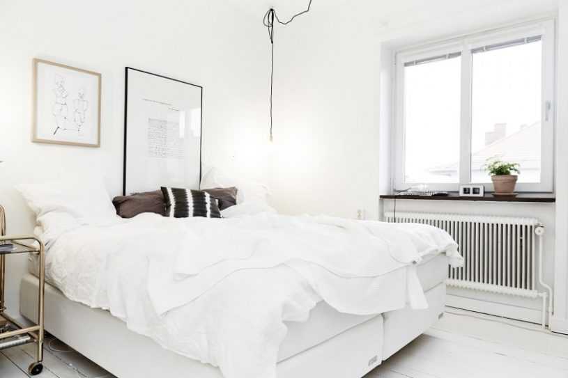 Существенным преимуществом этих цветов является их способность делать пространство шире и объемнее. В том случае, если комната не отличается большими размерами, отличным вариантом будет поклеить светлые обои или покрасить в белые или бежевые цвета стены. Особенно популярна белая спальня в скандинавском стиле.