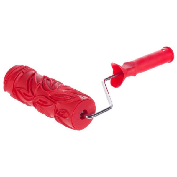 Для того чтобы не ошибиться при создании рельефа на стене, можно сперва потренироваться на небольшом кусочке деревянной доски. На следующем фото узор создается с помощью специального валика.