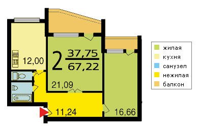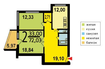 | 2-комнатная квартира | 56—73 | 31—40 | 8—15 |