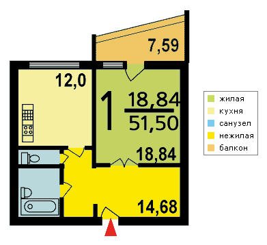 | 1-комнатная квартира | 41—54 | 18—21 | 8—12 |