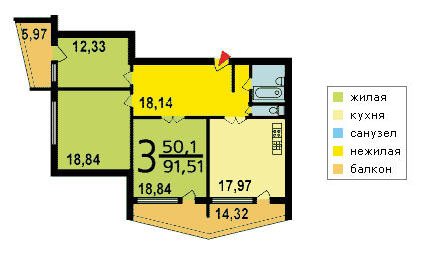 | 3-комнатная квартира | 71—95 | 43—55 | 11—13 |
